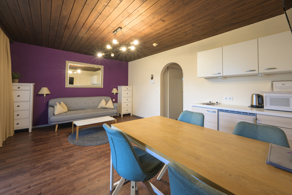 Typ 3 (27 m², 1–3 Pers.): Wie Typ 2 nur zusätzlich mit einer Kitchenette ausgestattet.