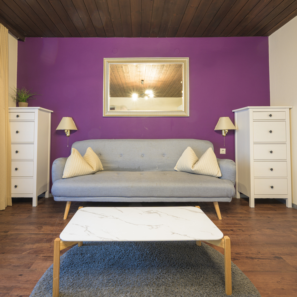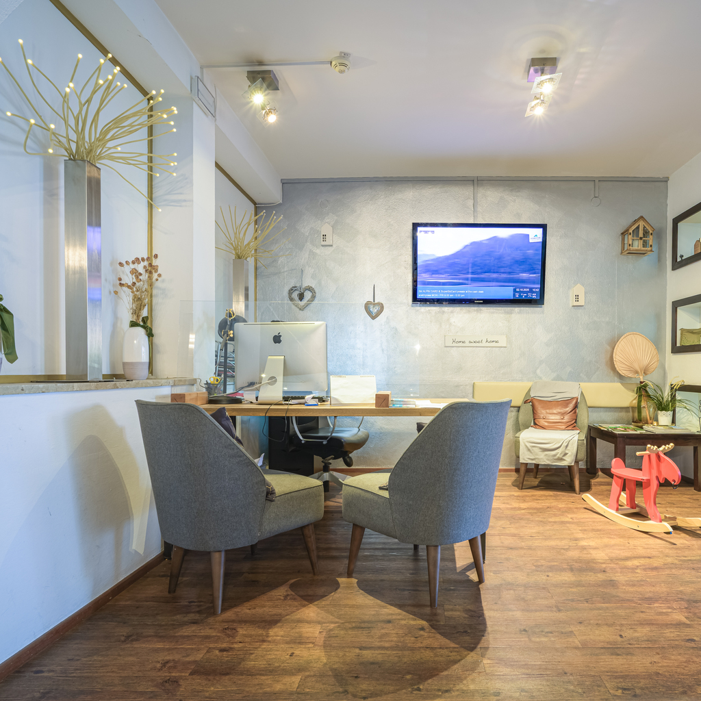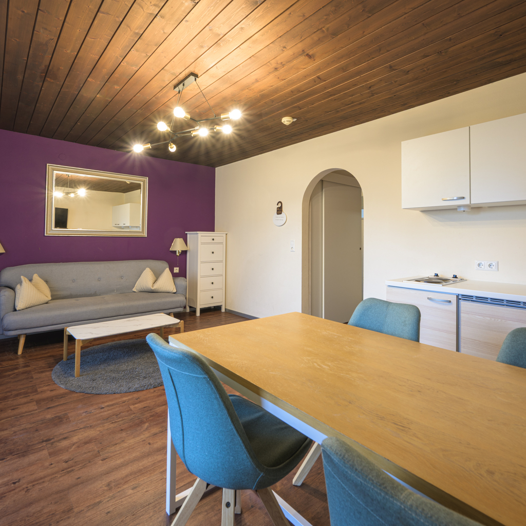 Typ 4 (ca. 40–45 m², 3–6 Pers.): Großzügige Einheiten mit zwei Räumen, großem Balkon, zwei Flatscreen-TVs und einer Küchenzeile. Ideal für Familien.